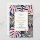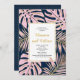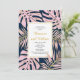 Pink tropical leaves navy wedding couple's shower invitation
