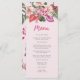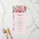 Pink Tropical Menu. Impress your guests with our stylish menu, featuring a tropical pattern on the back. The lush green palm and monstera leaves, vivid magenta and fuchsia orchids, and delicate blush pink hibiscus flowers create a cohesive and elegant look, adding a touch of sophistication to your baby shower dining experience.