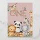 Pink Tropical Wild One Jungle Safari Animals Foil Invitation
