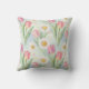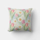 Pink Tulip Daisy Watercolor Spring Pattern Throw Pillow
