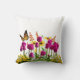 Pink Tulip Flowers and Butterfly Throw Pillow
