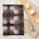 Pink Tulip Flowers With Raindrops Pattern Kitchen Towel