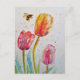 Pink Tulip Tulips and Bee Floral Watercolor PostCard. Colorful Tulip and Butterfly Watercolor Gift Greetings Card, with fully Customizable Name. A glorious card to compliment any gift. Designed from my original watercolor paintings, that I painted from my own flower garden.