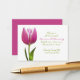 The text on these pink tulip wedding reception cards is fully customizable. To change it use the personalize option. For more extensive changes, including changes to the font, font color, font size, background color, or text placement, use the customize option. Note, these are ordered in batches of minimum 100. If smaller numbers are required or more text is needed, the reply card in this line, with changes to the text, could also be made into a reception card. This could also be used as a direction or accommodation card.