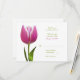 The text and background color on this magenta pink tulip wedding reply or RSVP card is fully customizable. You can change the text using the personalize option. For more extensive changes to the card, including changing the background color, font, font color, or text layout, choose the customize option. This is a great reply card for a spring, summer, or fall wedding with a tulip theme. Simple, pretty, and cheerful. This invitation is currently customized as a wedding reply card, but would also work great as an invitation for a bridal shower, special birthday, anniversary, or garden party. All you need to do is change the wording. Also, with changes to the text, you can make this a reception, direction, and/or accommodation card. Check out the matching wedding invitation shown below.