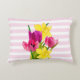 Decorate your home with this pretty spring floral designed pillow. This accent pillow features a pastel pink and white striped background with an overlay of tulips and daffodils. A cheerful pillow for your bedroom or living room areas. Perfect for spring, Easter and Mother's Day decorations.