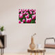 Poster shown with a photo print of a field of pretty pink tulips. Customize this item or buy as is. Stock Image