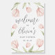 Pink watercolor tulips on a white background. A perfect welcome greeting for all your baby shower guests. A perfect welcome for your special day. Beautiful for any time of the year, but especially spring and summertime.