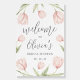 Pink watercolor tulips on a white background. A perfect welcome greeting for all your bridal shower guests. A perfect welcome for your special day. Beautiful for any time of the year, but especially spring and summertime.