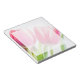 Notepad with a beautiful spring photograph featuring 2 pink tulips and bright green leaves.