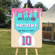 Pink Turquoise Baseball Drip Birthday Welcome Sign