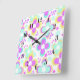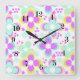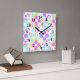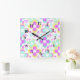 Pink, turquoise, floral square wall clock