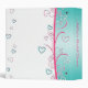 You can personalize the text on this whimsical pink and turquoise hearts and scrolls binder. Use it as a photo album for a wedding or bridal shower, a wedding planner binder, a journal, or a school binder. To change the text, use the personalize it option. For more extensive changes to the text including changes to the font, font color, font size, or text placement, use the customize it option. Photo album inserts would need to be purchased in you plan to use it as a photo album binder. It would also make a great wedding scrapbook.