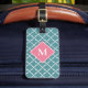 Pink Turquoise Quatrefoil Pattern Custom Monogram Luggage Tag