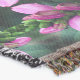 A quality printed throw has its advantages. This is a much finer weave throw than its loopier cousins, and though lighter, it is worth the investment for custom room accessorizing. The back is much prettier than the typical brown, and the fringe on the long sides very vivid, the selvage nicely done. Before photographing, I washed the throw in cold water, delicate, with a thicker woven throw the same size. On tumble dry low, this throw was dry in half the time as the other. This is a very practical quality if you use throws for furniture covers or to wrap up in frequently. The sleekness of the fabric makes it a great layer for accenting or protecting without the feeling of sitting on too much stuff. Perfect for napping or when you feel a light chill coming on. The color printing is beautiful and on this fabric, matched the design and color of my Photoshop image. This is an advantage for blending room fabrics and colors. The fringe on the short sides prints the colors from the design image and therefore varies from the side fringe. I streaked a white fractal line through the plaid pattern to give the illusion of weaving. This printed as crisp as an illusory thread, and put some white in the short side fringe, showing another advantage of print vs loomed- for artistic purposes, line lines, detail, and color integrity can be planned and preserved. My loomed throws have color limitations and more of a needlepoint texture. Print throws reproduce an exact image. The throw felt a little stiff straight out of the package, but this went away in the first delicate wash. Of course I searched the wash water for ink or bleeding and there was none.