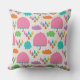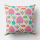 Pink Umbrellas with Clouds and Raindrops Throw Pillow
