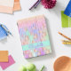 A trendy rainbow colored background with unicorn and rainbow pastel colors in pink, purple, rose gold, mint green. Decorated with faux glitter drips in rose gold, pink and purple and a golden unicorn pattern. A mint green band. Personalize and add a name, written with a modern hand lettered style script. Purple colored letters.