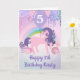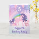 Pink Unicorn with Rainbow and Candy 5th Birthday Card