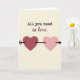 This warm and heartfelt greeting card features a soft cream background that sets a gentle, welcoming tone. The design is divided into two parts, with the message at the top and artwork below. At the top, the phrase “All you need is love” is displayed, with “All you need is” written in dark maroon block letters and “love” in matching maroon script that flows smoothly. Beneath the text, two large hearts sit side by side, one deep maroon and the other pale pink. A dark arrow runs through both hearts, symbolizing connection and shared affection. Light shading under the hearts adds depth while keeping the focus on the message. This card feels sincere and meaningful, making it a lovely way to share love on Valentine’s Day with a partner or close friend.