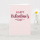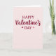 This cute Valentine's Day card features a light blush pink background that feels calm and sweet. In the center, the message reads “Happy Valentine’s Day” in deep red. “HAPPY” and “DAY” are in simple all-caps print, while “Valentine’s” is in a flowing cursive style that looks like handwriting. Two small hearts sit near the word “DAY,” with one heart in the same deep red and the other in a lighter pink. The layout leaves plenty of open space around the words, keeping the focus on the message and the hearts. Overall, it’s a gentle, romantic look that fits a caring note to a partner or a close friend