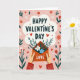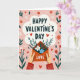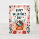 This card shows a soft blush pink background filled with small hearts, flowers, and leaves that float around like confetti. Near the top, a white cloud-shaped bubble holds the text “HAPPY VALENTINE’S DAY” in simple black letters, with tiny red hearts sprinkled nearby. In the center, two hands in red sleeves with white polka dots gently hold an open orange envelope. The envelope is packed with white flowers, one calm blue flower, and lots of green leaves, like a sweet bouquet spilling out. On the front of the envelope, the word “LOVE” appears in plain, easy-to-read letters. The overall look feels warm and friendly, with soft shapes and a cozy, romantic mood. It’s a nice choice for a partner, close friend, or anyone you want to make feel cared for 💕❤️. Hope it helps you share a little extra love on Valentine’s Day 😘.