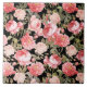 Pink Victorian Roses on Black Pattern Ceramic Tile