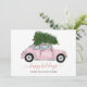 Pink Vintage Christmas Car Weve Moved Holiday Card