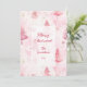 Pink Vintage Christmas Pine Trees Holiday Card