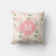 Pink Vintage Roses Pattern Monogrammed Throw Pillow