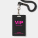 Pink VIP All Access Pass Event ID Badge. An editable template, a custom VIP personalized badge, can be used as a backstage pass for special guests.
