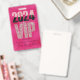A custom badge with a glamorous VIP design. The background is a hot pink foil design with "VIP" printed in a diamonds design. A sample event name is printed below which you can personalize to include your own custom event name or other text. Glitter confetti is printed along the top and bottom portions.