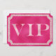 This custom party invitation features a glamorous, VIP ticket with a pink foil and glitter design. The background features a shiny looking hot pink foil texture, with a sparkly glitter style frame. "VIP" is printed on the front portion in a large, pink font. The back of the invitation features the event information.