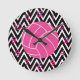 Modern & trendy pink volleyball and black and white chevron zigzag stripes pattern wall clock. Perfect to be placed in a mudroom, living room, kitchen, bedroom, dorm room or in any room! Makes a great gift for all occasions. Click the "Customize it!" button to add text and more!