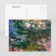 A fine art postcard with the landscape painting, Water Lilies (1917) by Claude Monet (1840-1926). A water lily pond with lily pads of white and pink flowers reflecting off the water, inspired by his own water gardens in Giverny, France.