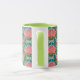 A beautiful white Ringer Mug with a Green Lip and Handle and a pattern of Water Lilies, from a hand-painted paper collage by Judy Adamson. Excellent gift for someone with a July birthday; Part of the Posh & Painterly 'Lily Pond' collection.