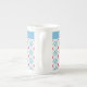 A chic Bone China Mug to personalize, with a pattern of pink Waterlilies and Blue Dragonflies; from the Posh & Painterly 'Lily Pond' collection.