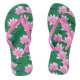 Flip Flops in a pattern of water lillis in soft shades of pink, and emerald green lily pads, floating on a pond
