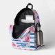 Pink Watercolor Blossoms Floral Personalized Name Backpack features a modern watercolor pink blossom floral pattern on a blue and white stripe background with your personalized name, monogram or text. Perfect for school, sports, gym, travel and more. Designed by ©Evco Studio www.zazzle.com/store/evcostudio