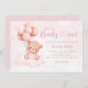 Pink Watercolor Boho Teddy Bear Girl Baby Shower Invitation