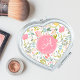Romantic chic feminine custom heart compact mirror with spring watercolor pale blush pink, coral, yellow, blue, and green hand painted blooms and foliage. Personalize it with your monogram and name in an elegant editable script calligraphy typeface! ++++++++++++ Could be a pretty customized birthday or Valentine's Day gift for your girlfriend / wife / mother / sister.