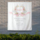 This romantic wedding welcome sign tapestry features an elegant floral crest design infused with regency-inspired sophistication and delicate rococo charm. The soft watercolor illustration showcases lush botanical elements in shades of blush pink, soft red, gentle greens, and pale blue, arranged in a graceful symmetrical composition. A flowing pink ribbon frames the crest, adding a whimsical, vintage flair, while refined typography in both serif and script fonts introduces the couple and event date with timeless elegance. Ideal for garden weddings, romantic celebrations, or vintage-themed ceremonies, this personalized tapestry blends classic European influences with modern softness, creating a warm and inviting entrance for guests.