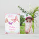 Pink Watercolor Butterfly Photo Invitation