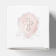 Pink Watercolor Crest First Communion Cube Favor Boxes