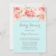 Pink Watercolor Floral Blue Baby Shower Invitation