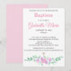 Pink Watercolor Floral Cross Baptism Invitation