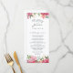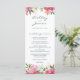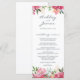 A romantic watercolor floral wedding menu featuring soft pink blooms and delicate greenery accents. This elegant garden-inspired menu card is perfect for spring and summer wedding receptions.