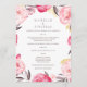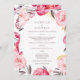Pink watercolor flower wreath wedding program for your wedding day. Trendy watercolor for whimsical boho style weddings. Pink and golden. Elegant floral design in vintage bohemian style.