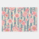 Pink Watercolor Flowers on Stripes Wrapping Paper Sheets
