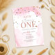 Pink Watercolor Glitter 1st Birthday Invitation