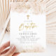 Pink Watercolor Gold Cross Gir Christening Baptism Invitation